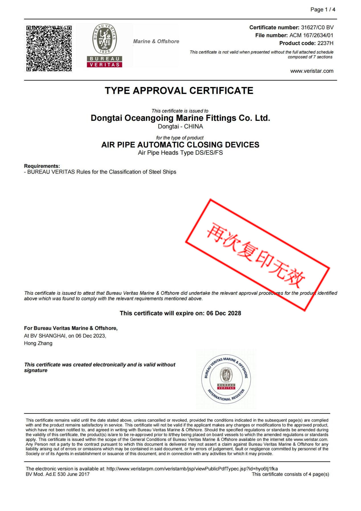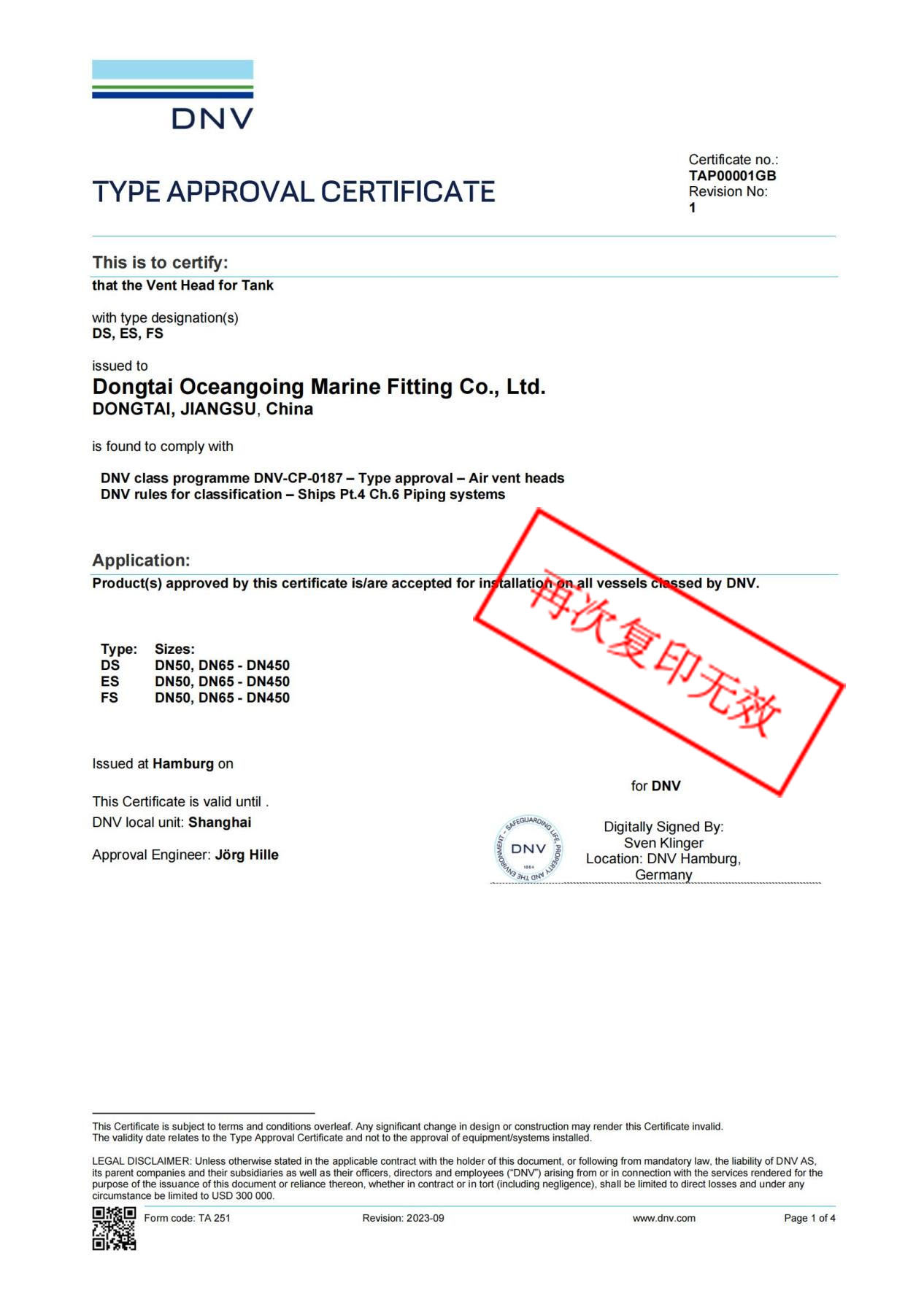 The company places great emphasis on management and has obtained ISO9001 Quality Management System Certification, ISO14001 Environmental Management System Certification, and ISO45001 Occupational Health and Safety Management System Certification, strictly adhering to international standards. Additionally, it has obtained Special Equipment Production License and Certificate of Measurement Assurance Confirmation Unit, and has been recognized by numerous classification societies such as China Classification Society (CCS) and Lloyd's Register (LR) for its factories and products. Its products are sold well both domestically and internationally, earning high recognition from customers.