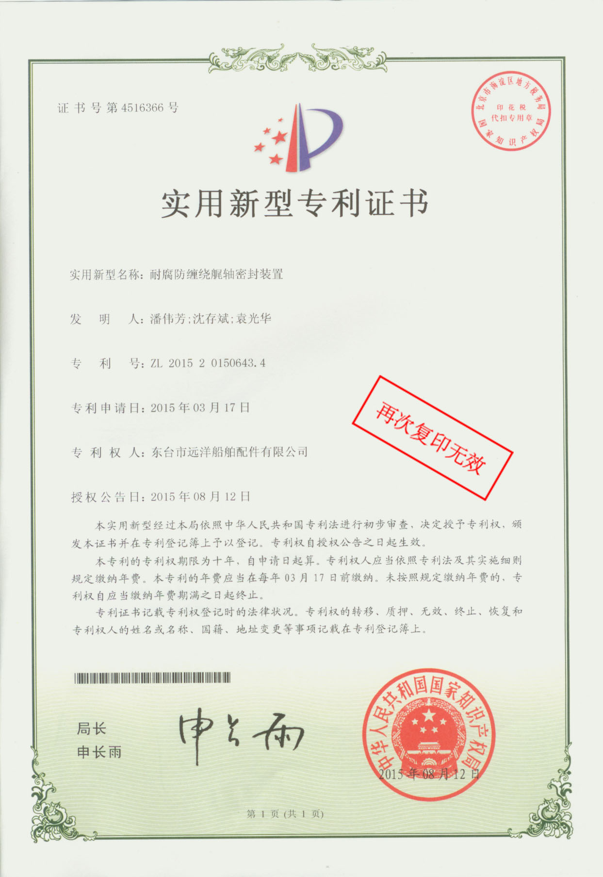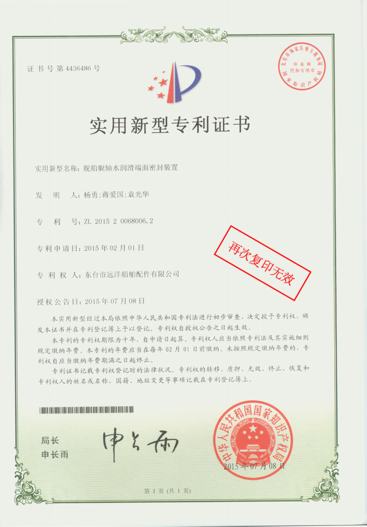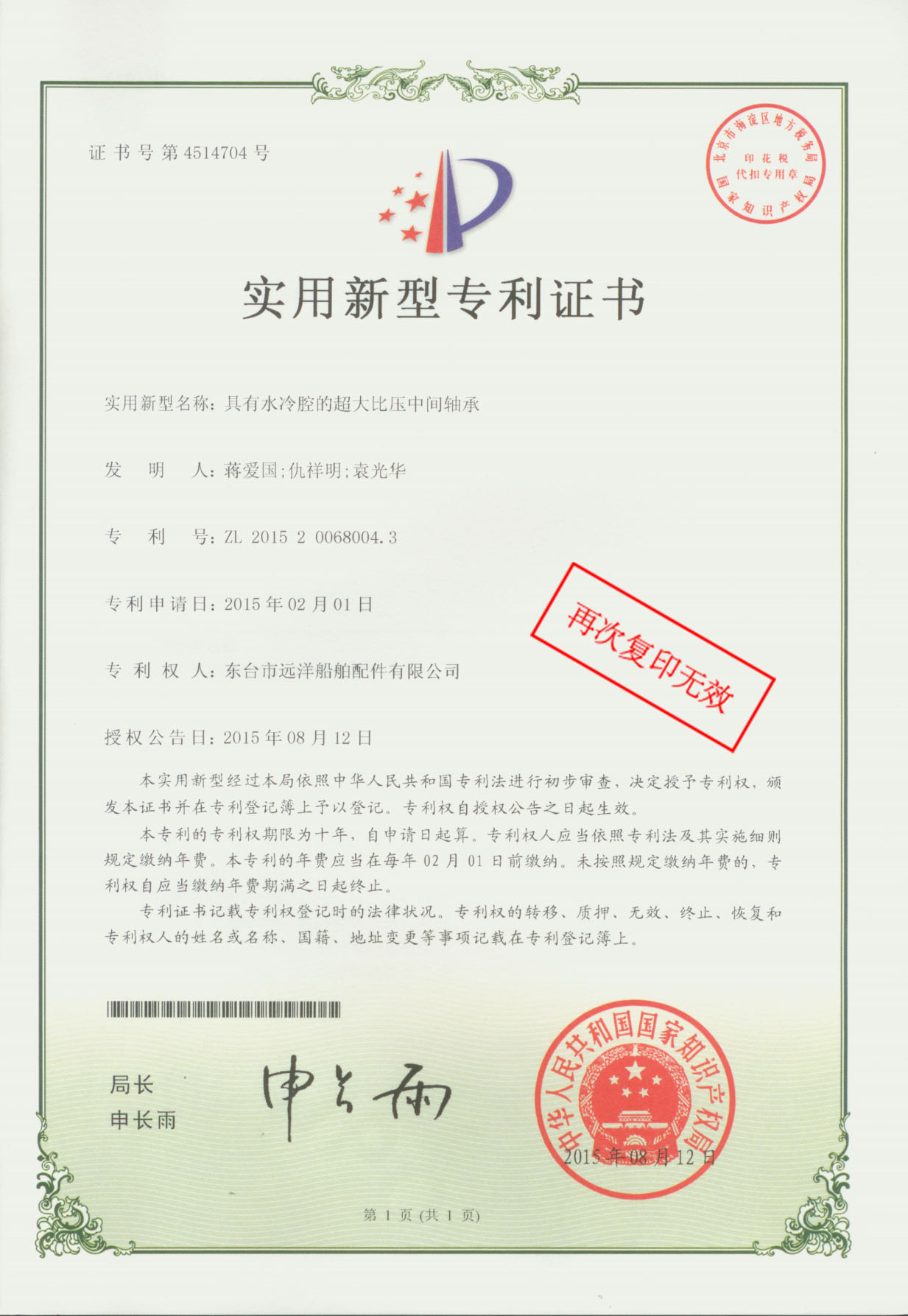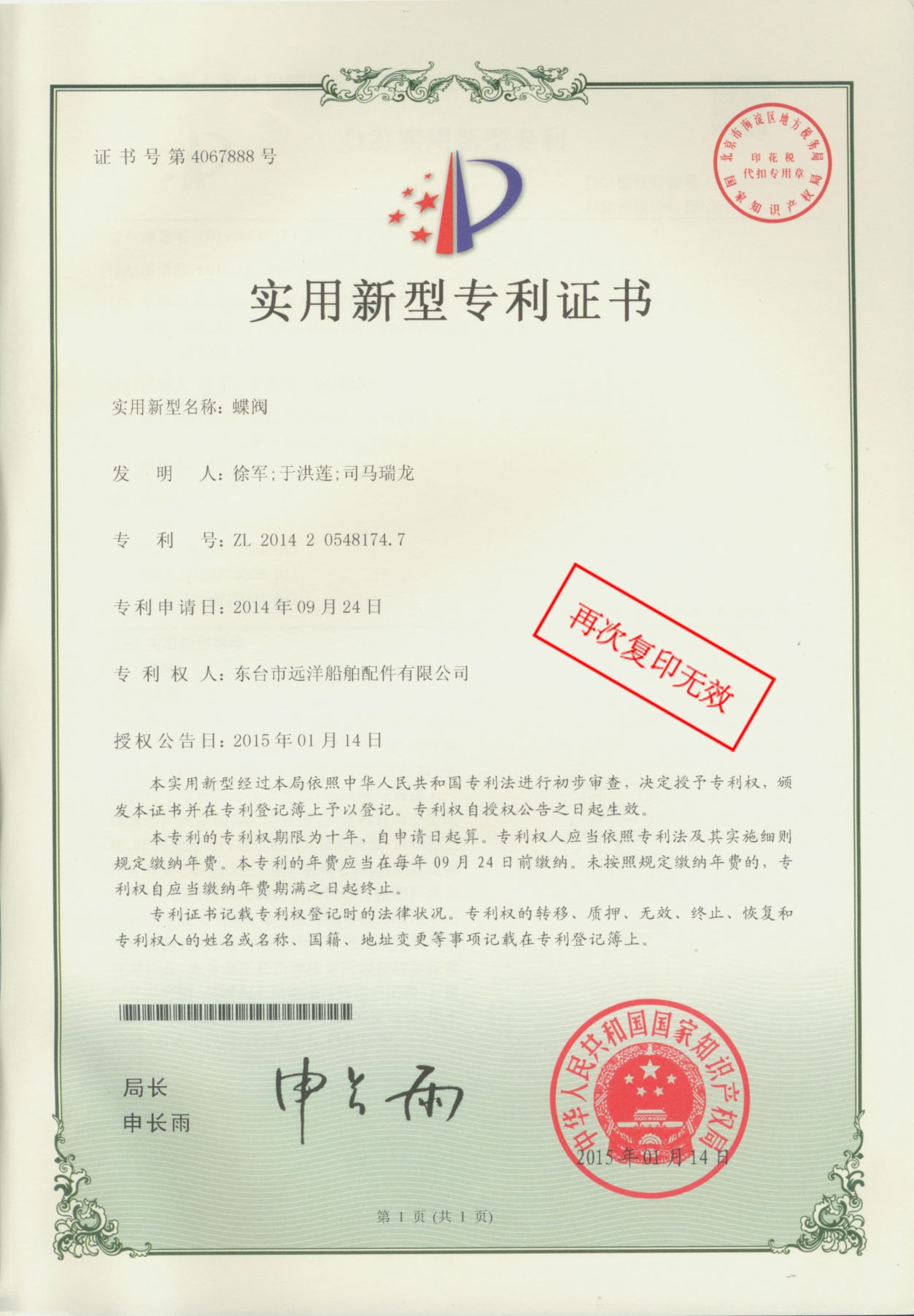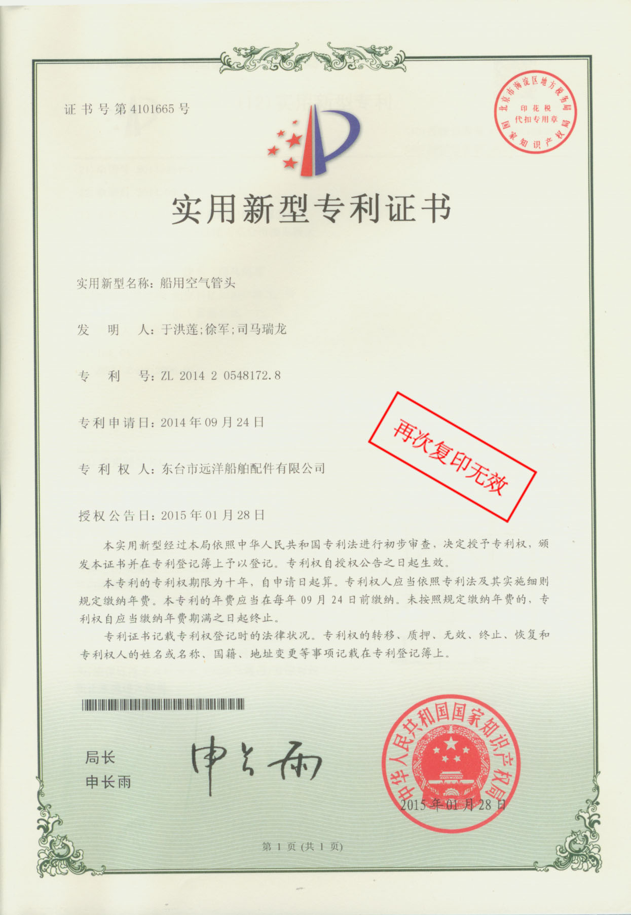Patent Certificate