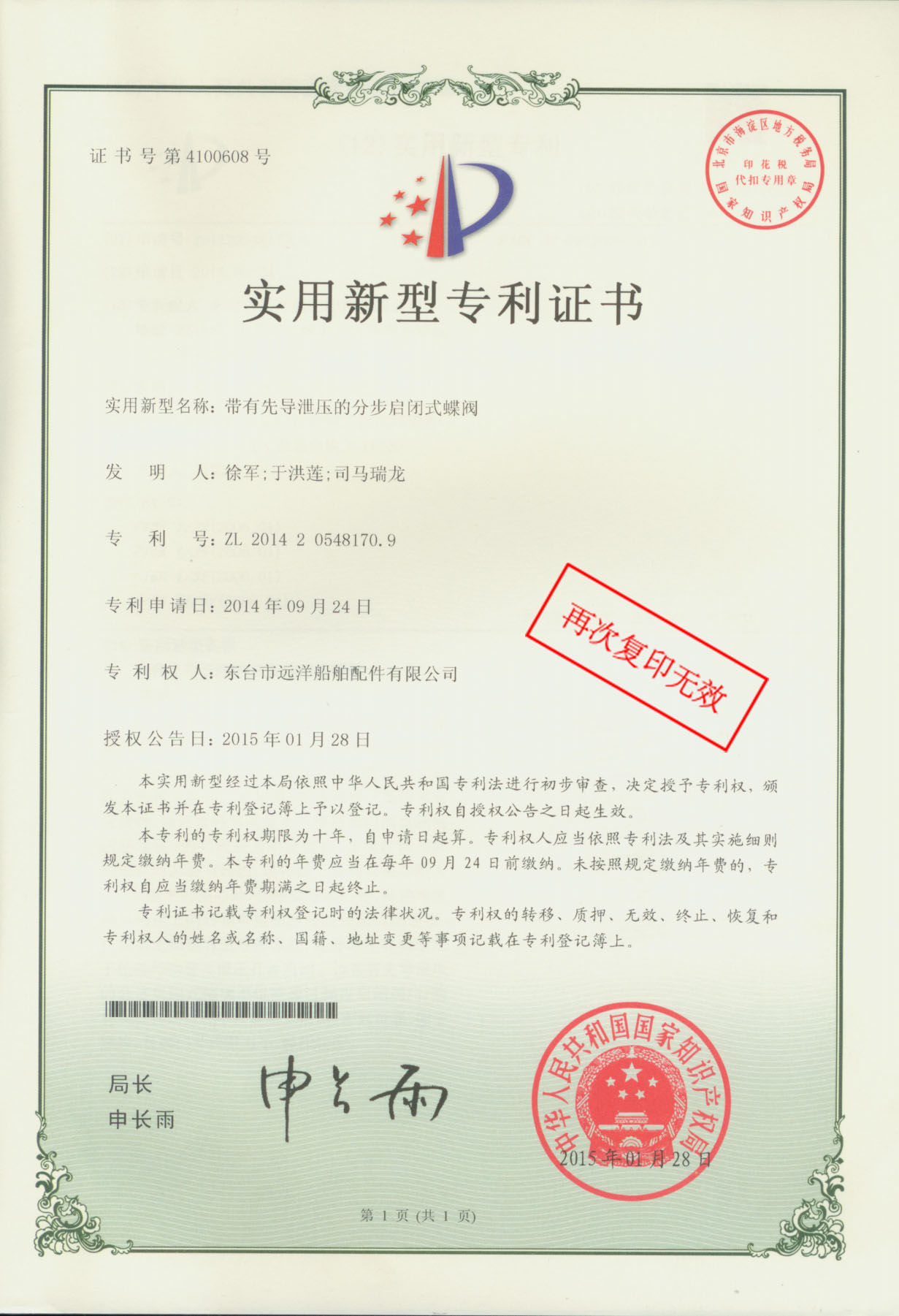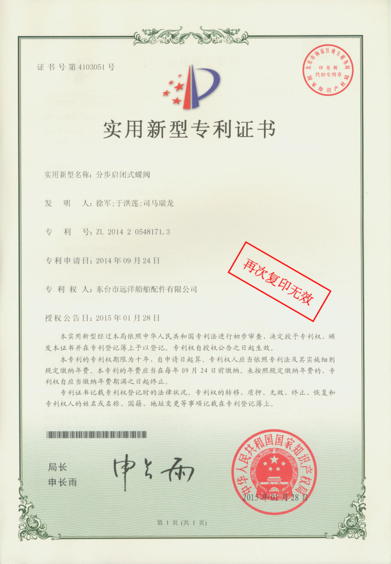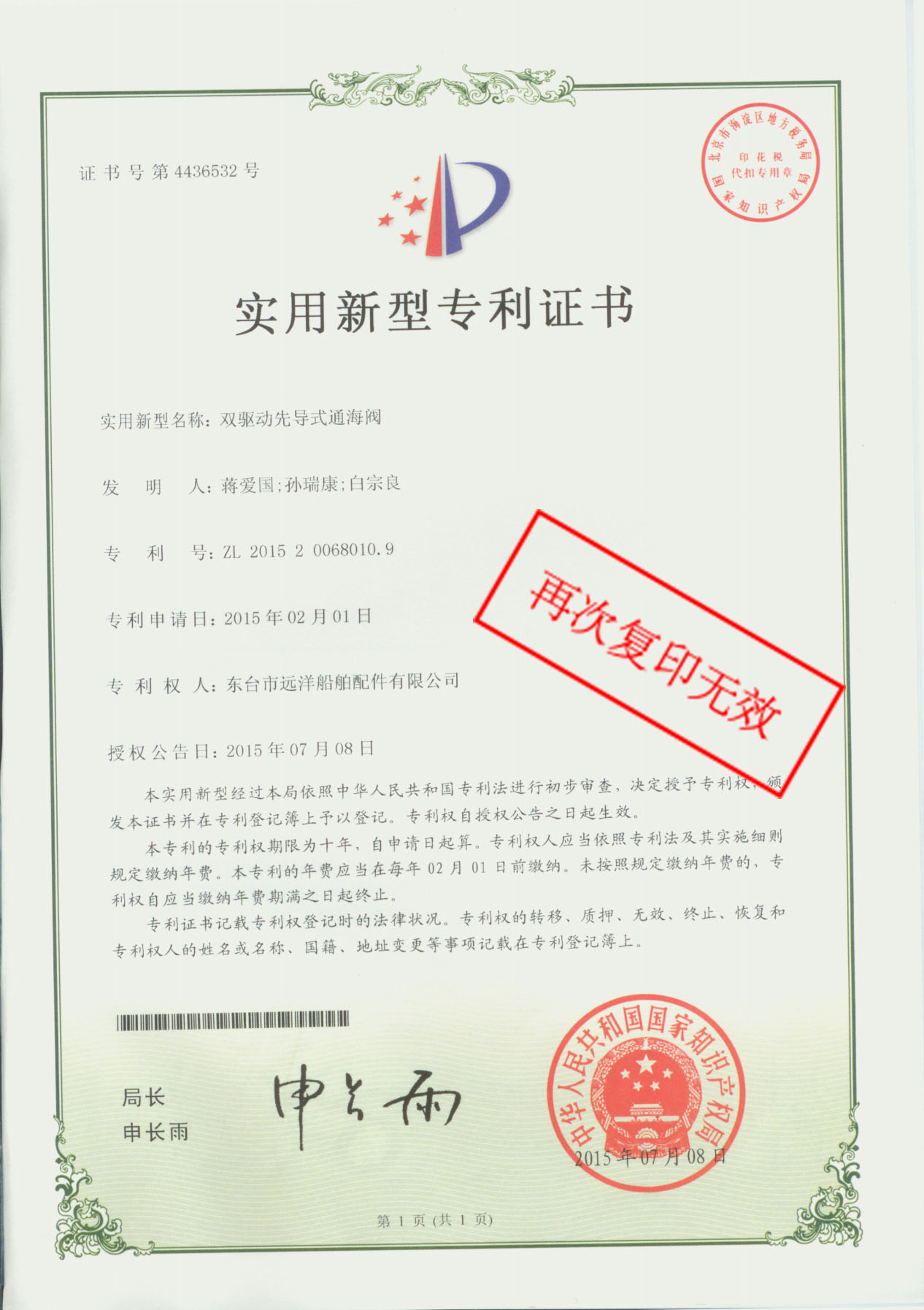 专利证书