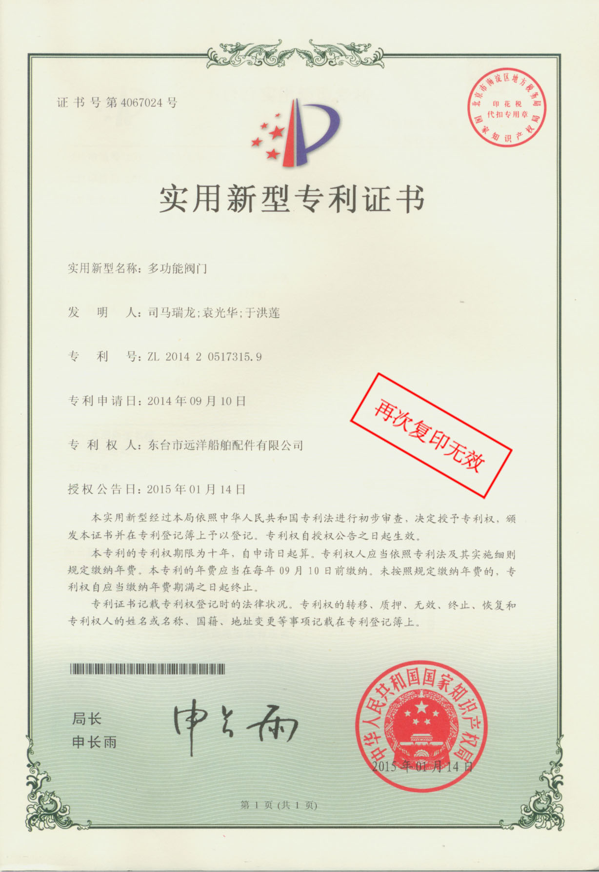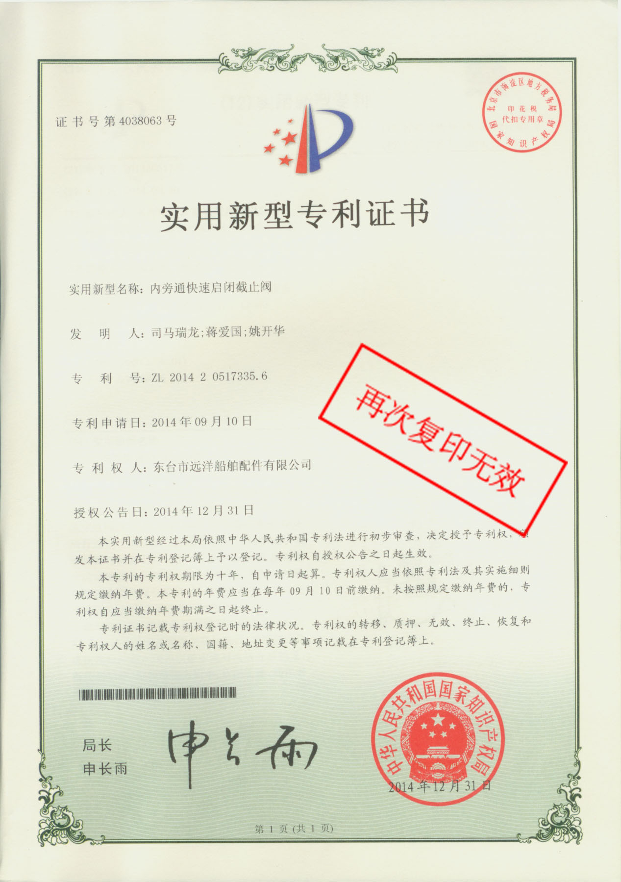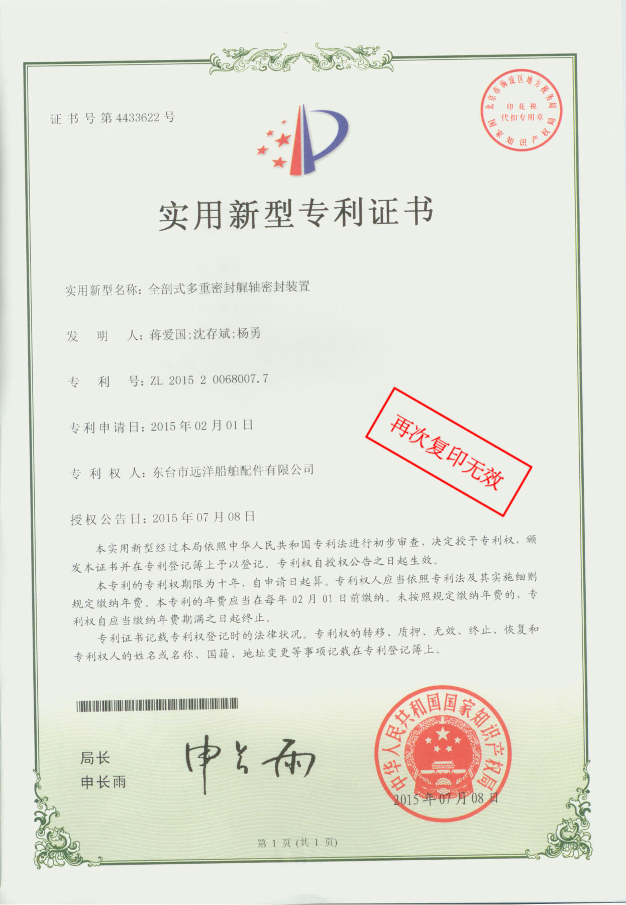 专利证书